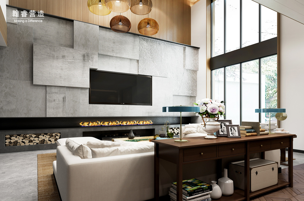 设计理念: 四面临水和精心规划的自然风光相结合,营造匠心独具的花园豪宅。中西文化艺术融合,多种风格设计,智能化家居系统,开创别墅新境界。 主案/深化 设计师:肖黎迦/翰睿营造团队 项目面积:58800㎡