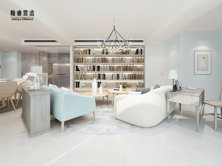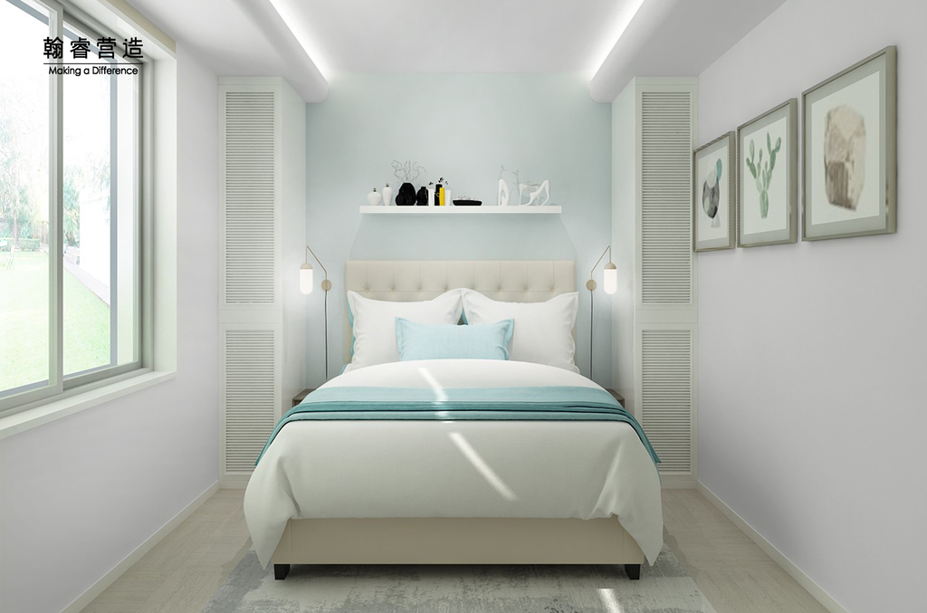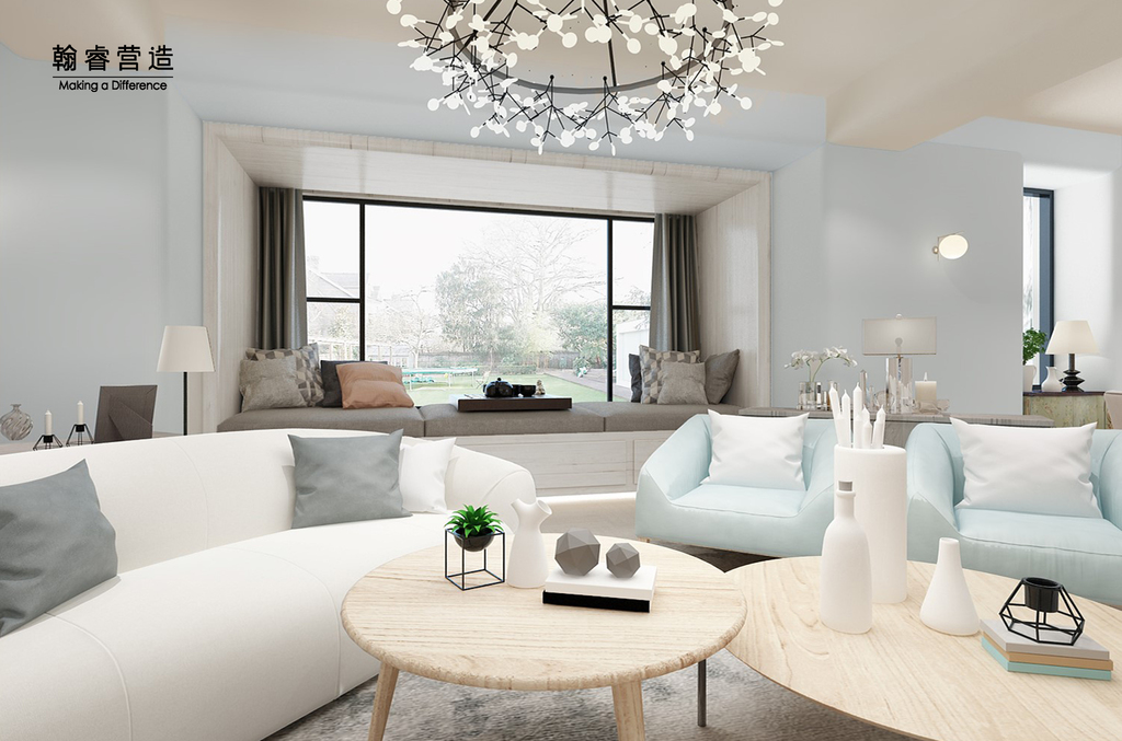 薄荷色基调打造时尚家居空间,整体高采光设计,通透明亮,定制级柜体、家饰等,大气典雅,体现文化融合和居处体验高标准。